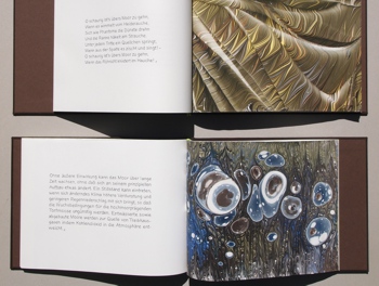 "Wellen vom Urknall" 8 Flottagen (marmoriert), Handschrift, Japanische Bindung, Unikatedition, 3 Exemplare, 2014 ca. 30 x 24 x 1 cm |