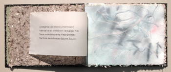 - "Nacht der Kohle", Text aus W. Hilbig: Alte Abdeckerei, 12 Zeichnungen auf handgeschöpftem Papier, 14 handgeschriebene Textseiten, Buchdeckel als Papierformung, Japanische Bindung, Unikat, 2010